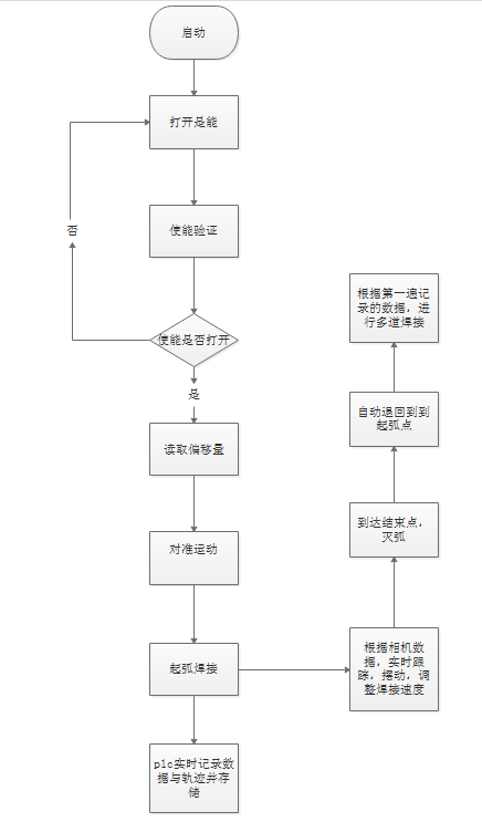 5.再按下原設(shè)備的啟動(dòng)按鈕,并起弧焊接,直到接收到原設(shè)備的結(jié)束信號(hào),則自動(dòng)停止跟蹤和焊接;