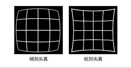 表示通過(guò)鏡頭成像的圖像發(fā)生歪曲的狀態(tài)。事實(shí)上不存在形狀完美的鏡頭。因此,雖然從理論上來(lái)說(shuō),直射光通過(guò)鏡頭后會(huì)沿著直線傳播,而實(shí)際上光通過(guò)鏡頭后會(huì)向外側(cè)或者內(nèi)側(cè)歪曲。前者稱(chēng)為「桶形失真」,后者稱(chēng)為「枕形失真」。一個(gè)鏡失真的參數(shù)以百分比表示。