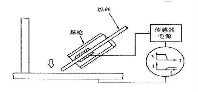 電弧傳感器是一種常見的焊縫跟蹤傳感器。通過電弧相對焊縫的擺動(dòng),直接利用焊接電弧參數(shù)的變化計(jì)算出焊槍至工件的距離變化量,進(jìn)而計(jì)算出坡口的位置形狀信息。電弧傳感器的優(yōu)點(diǎn)是不需要在焊槍上添加附加設(shè)備,成本低廉,缺點(diǎn)是對焊縫坡口形狀依賴較大,只適應(yīng)一些對稱坡口焊縫。